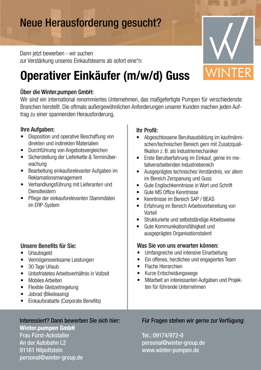 - Erste Berufserfahrung im Einkauf, gerne im metallverarbeitenden Industriebereich