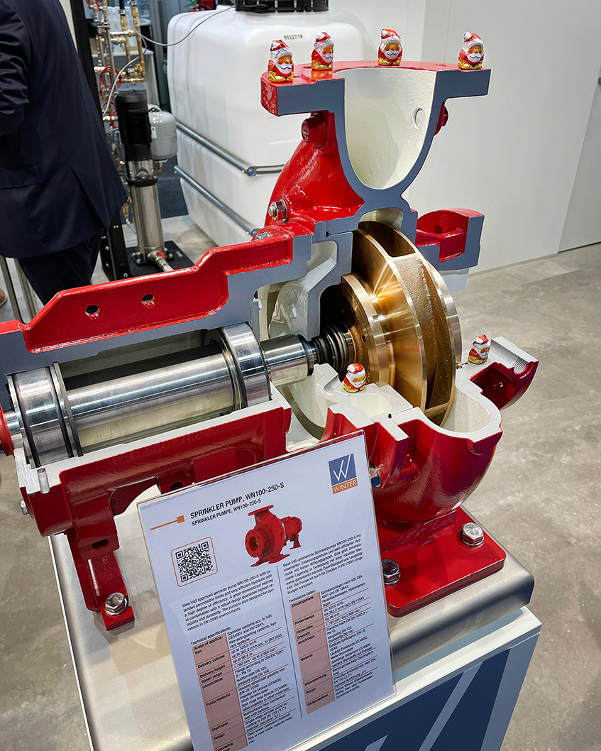 Two successful trade fair days full of interesting encounters are now behind us! Our exhibition team presented our newly developed pressure maintenance systems for water-glycol mixtures, as well as an open cutaway model of the WN100-250-S pump series, offering an exciting look inside a sprinkler pump.
